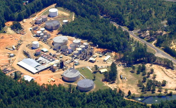 The Alabama Bulk Terminal Company, LLC provides a means of receiving waterborne crude oil into the Hunt Refining Company system. It also provides the strategic ability to market products into the southern Alabama and Florida regions. The facility sits on 57 acres located on the east bank of the Mobile River, with easy access to the Gulf of Mexico. It currently has nine tanks ranging in size from 25,000 barrels to more than 370,000 barrels, with an overall facility capacity of 1.2 million barrels. The facility also has a marine dock that can accommodate inland barges, ocean barges and ships up to 800 feet in length, as well as a rack loading system for trucks.
